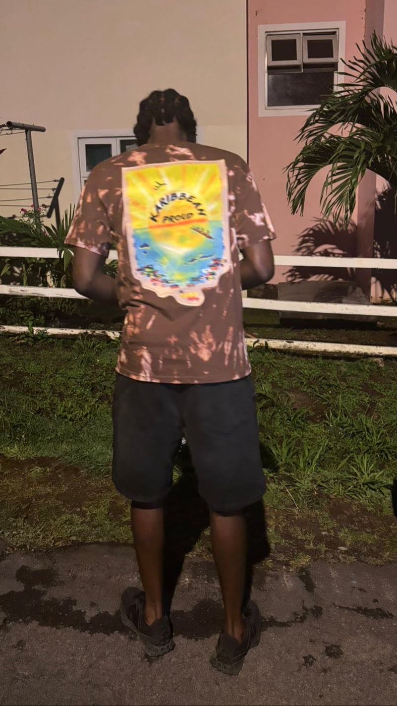 T-shirt Tie & Dye avec design Marron cream - KARIBBEAN PROUD