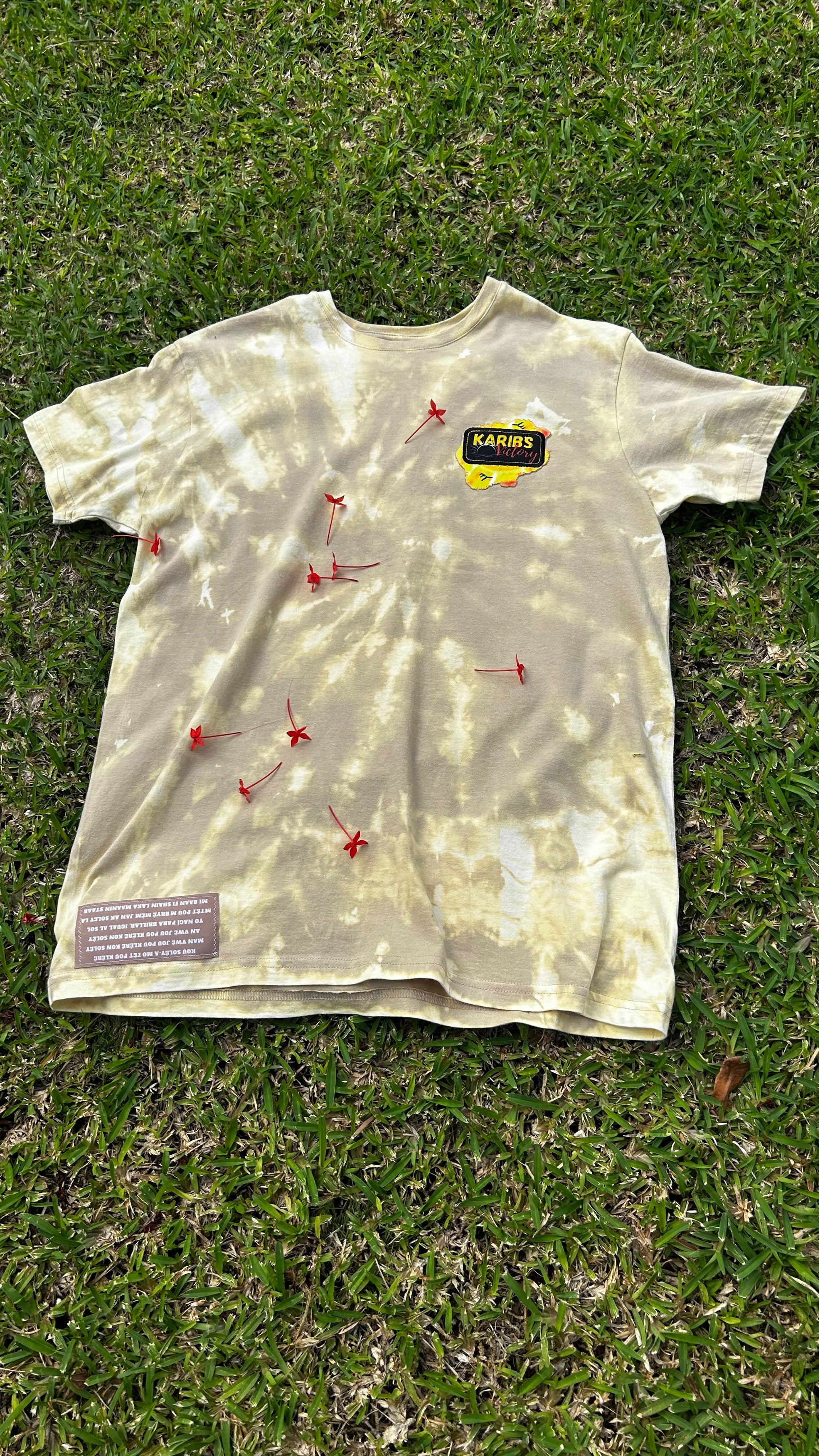 Un t-shirt chargĂ© dâhistoire : le premier design de KARIBS VICTORY, revisitĂ© en version 100 % homemade tie & dye.