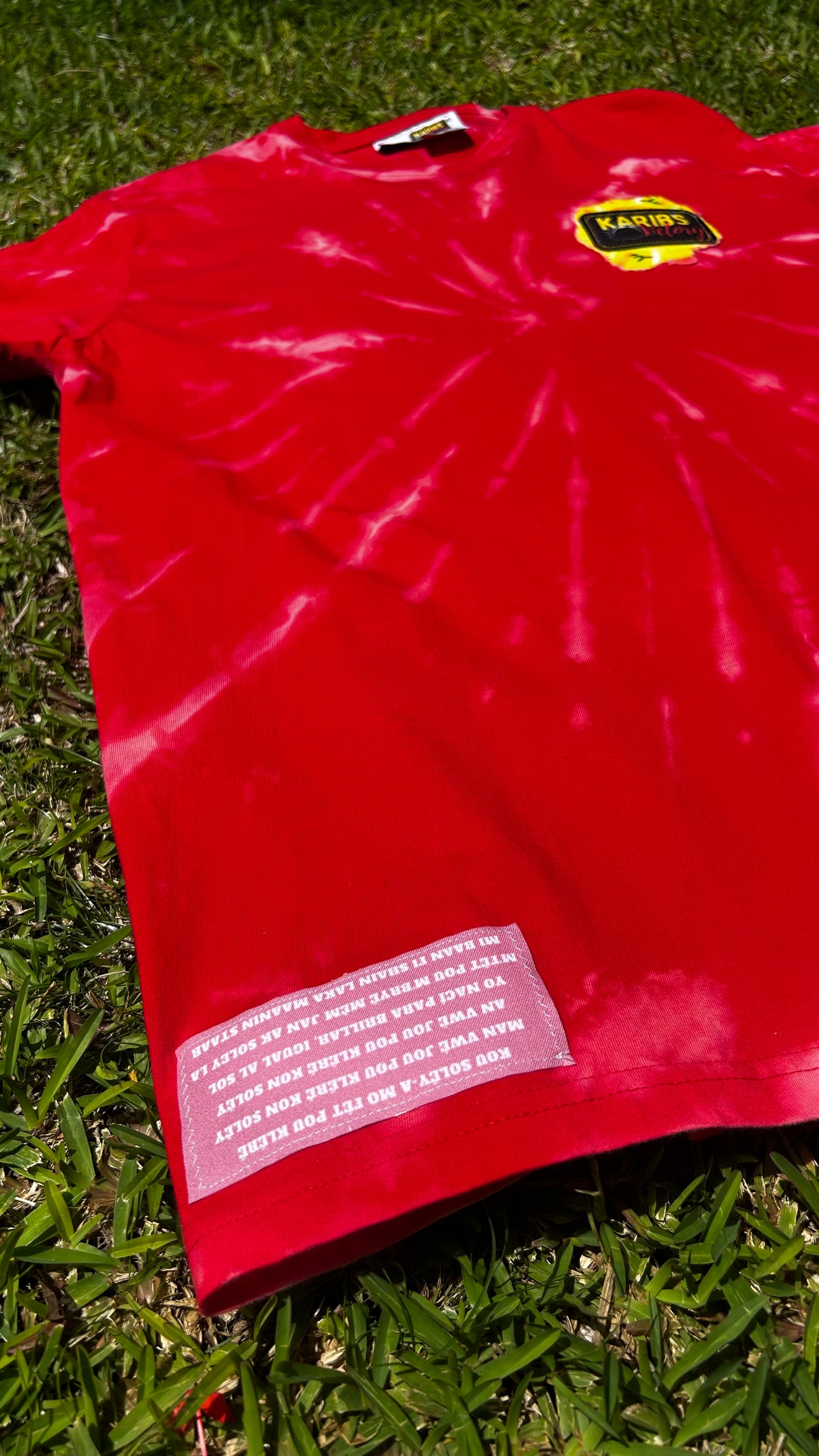 Un t-shirt chargĂ© dâhistoire : le premier design de KARIBS VICTORY, revisitĂ© en version 100 % homemade tie & dye.